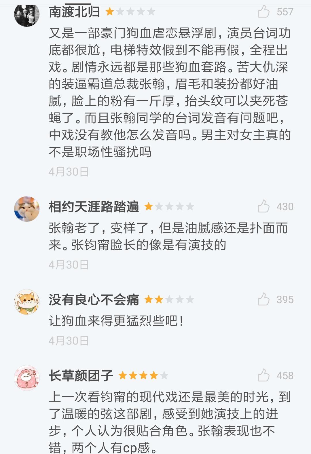 其次是选角方面,网友表示:张翰年龄真的有点偏大了,化妆用的粉底都能看出来涂了好多层,满脸的油腻感迎面扑来;但女主角张钧甯却得到了网友的一致好评,“演技好,长得美,演技有进步,很贴合剧中的角色”,听到最多的都是这些溢美之词。