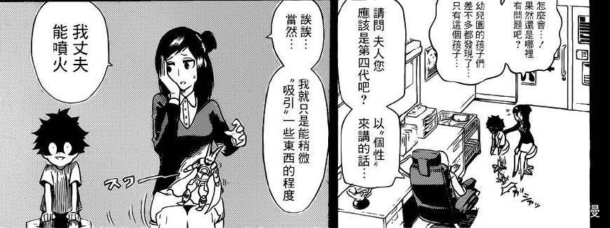 绿谷出久的母亲可以稍微的“吸引”一些物体,父亲可以喷出火焰。绿谷的父母都拥有个性,但是绿谷却没有遗传到,这只能用“罕见”去解释。