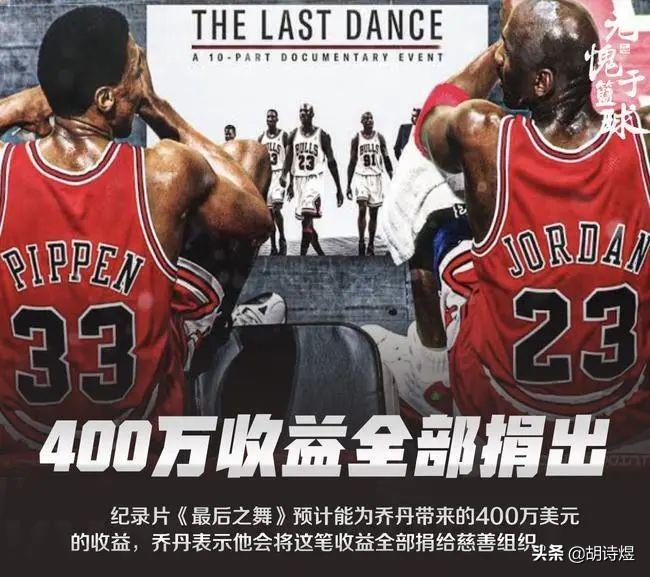 美国媒体预计这部纪录片将至少为乔丹带来400万美元的收益,而他表示,将会全部捐出给慈善组织。