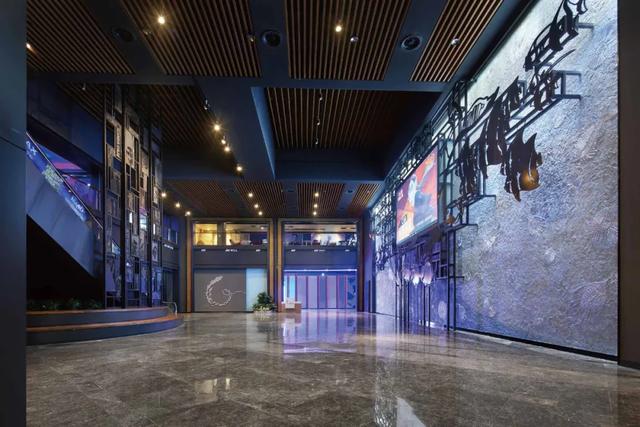在无锡万达影城融创茂店,你能看到太湖山水在墙内展现成一幅写意的画卷,影城内大面积的灰、红色调,演绎出层层渐变的光影。