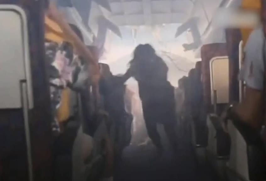 大约20分钟后,飞机爬升高度到达7,300米,距离卡富鲁伊东南偏南43公里。飞机顶棚开始出现裂缝,一个小男孩发现了裂缝按响了服务铃提醒空姐有裂缝。可是当大家发现时裂瞬间缝撕裂,接着飞机顶仓天花板破裂,行李与飞机顶仓一起飞走。