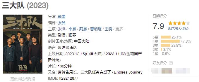 最近上映的《三大队》被称为是今年的犯罪片最佳,豆瓣涨至 7.9 分,一看监制,还是陈思诚。