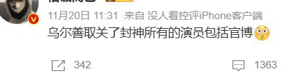 反正乌尔善是把包括电影官博在内的所有演员和主创都给取关喽。