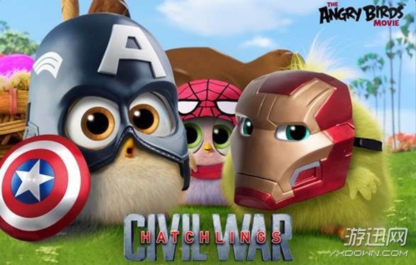 最新曝光的海报中,三只雏鸟出镜玩儿起了cosplay,扮成了超级英雄,似乎在为即将上映的《美国队长3》加油打气。小小鸟中的智商担当小黄鸟戴上了钢铁侠的面具,小小的身躯略微前倾仿佛无法承受面具的重量,稍大一些的米白色雏鸟装扮成美国队长,头戴面具,手拿盾牌,嘟嘴卖萌。而古灵精怪的紫色雏鸟则戴着蜘蛛侠的头盔躲在他俩身后,看起来很害羞。让人不禁联想如果美国队长和钢铁侠真的变成小雏鸟这样Q弹可人萌萌哒,友谊的小船是否还会说翻就翻。