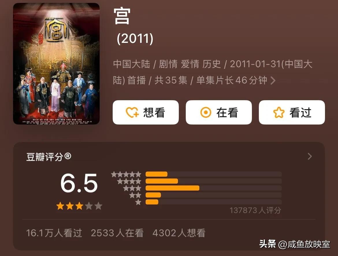 剧情评价:《宫锁心玉》作为穿越剧的经典之作,以独特视角展现清朝宫廷生活。剧中主角们在权谋与情感之间挣扎,剧情紧凑,爱情线扣人心弦,八阿哥与晴川的甜蜜互动、四阿哥的深情隐忍,都赚足观众眼泪。杨幂、冯绍峰等演员表现出色,将角色性格演绎得淋漓尽致,生动展现了人物的成长蜕变。该剧凭借新颖设定与精彩剧情,引发全民追剧热潮,掀起了影视行业的穿越剧热潮。不过,剧中对历史的改编较大,在一定程度上偏离史实,成为了该剧的诟病,但这并不影响这部穿越经典在观众心中的重要地位。
