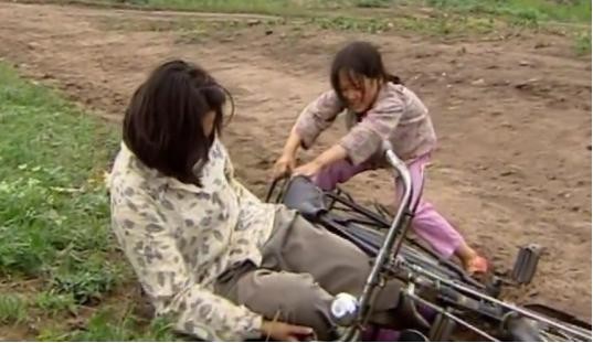 当香草再一次把小花送走时,小花跑着追着香草,路上边哭边求香草,在两个人拉扯下,小花和香草都摔倒了,自行车压在了香草的身上。