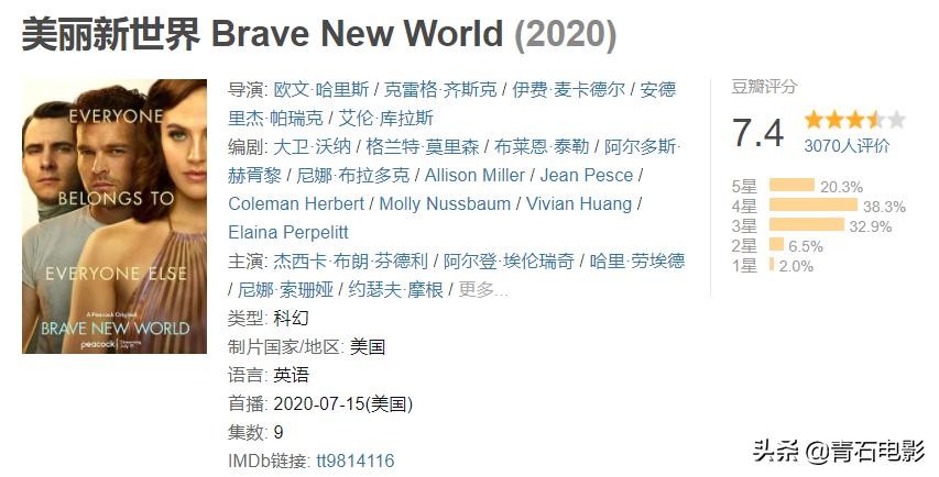 新播美剧《美丽新世界》,豆瓣分从8.3一路降到7.4,原著粉很失望