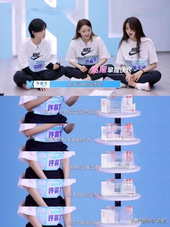 在节目中,金子涵一出场就让在场男生们躁动不已,周柯宇一听到是乐华的,就问金子涵会来吗?刘思维叫了金子涵名字,卢奂瑜还对金子涵说,你属于我。最后还是黄新淳霸气地跟众人说,不要跟我妹妹搭讪。