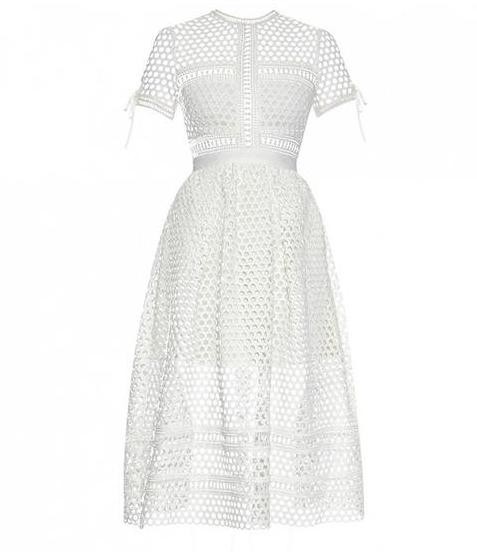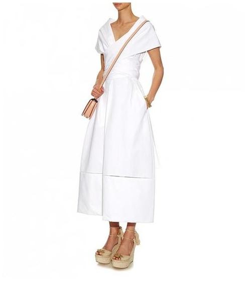 这款白色连衣裙虽然版型看似有点普通,镂空设计却透露出设计师的几分野心,若影若现的肩膀和小腿吸睛度十足。