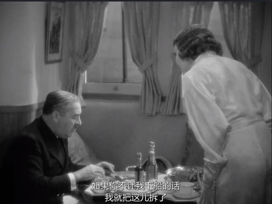 爱丽扬言要拆掉船后,父亲悠哉游哉的吃着牛排,他没有说女儿任性,反而是让女儿吃一口东西。情节的设置反应了父亲对爱丽的宠爱程度,这才有了爱丽敢跳海逃跑的行为。