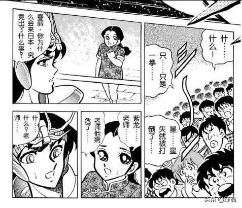 在银河战争擂台赛上,“天马对天龙”之战开打时,春丽跑来赛场,告诉台上的紫龙他师父病危。深念师恩的紫龙回忆起师父的教导,在紫龙的回忆中,【童虎】出镜。