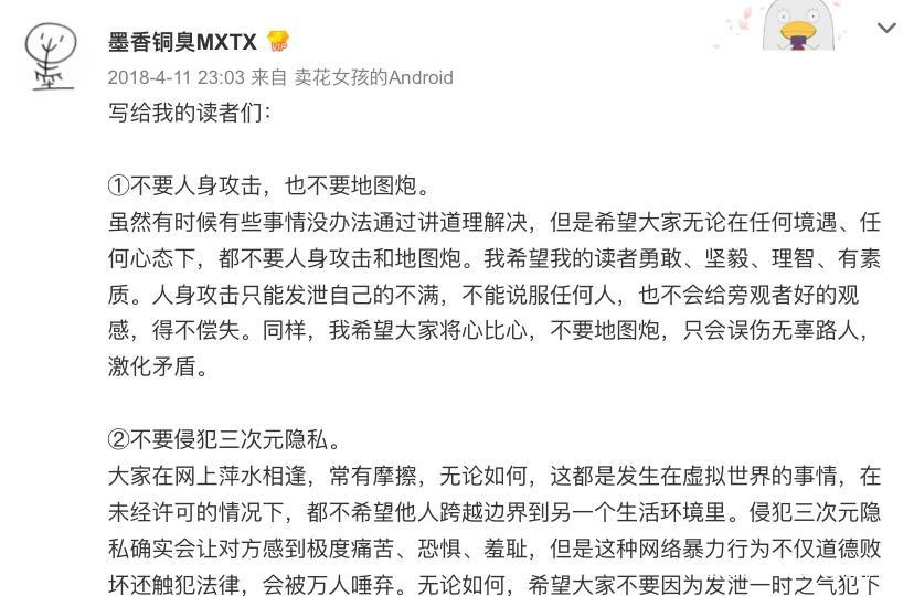 相信不少人是从魔道祖师入坑人渣反派自救系统,再到天官赐福,每部小说的大热都伴随着争议,微博黑子和粉丝的撕逼也一直持续不断,愈演愈烈。今天小编就和大家八一八这次案件的始末。