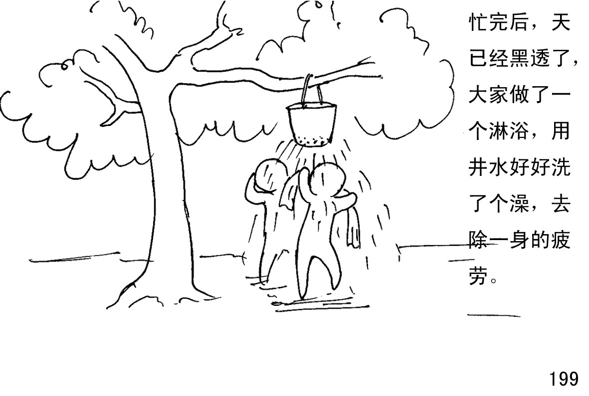 忙完后,天已经黑透了,大家做了一个淋浴,用井水好好洗了个澡,去除一身的疲劳。