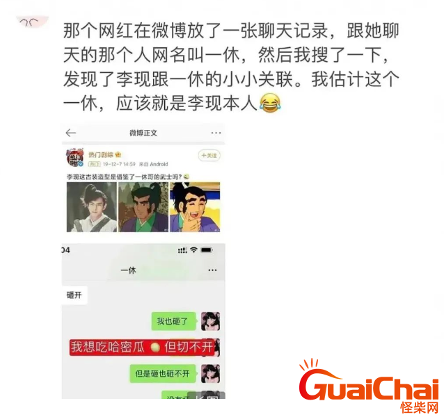 3.网红微信给男朋友备注一休,和李现有点关系:
