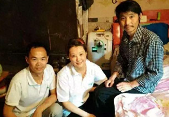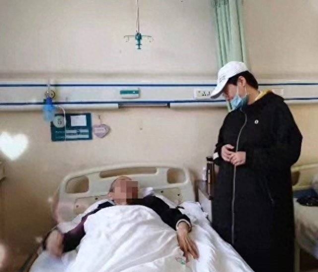 袁立此行是为了看望尘肺病患者,其中一张照片袁立在尘肺病换成病床前与他攀谈,面带慈祥,就像是患者的亲人一样。
