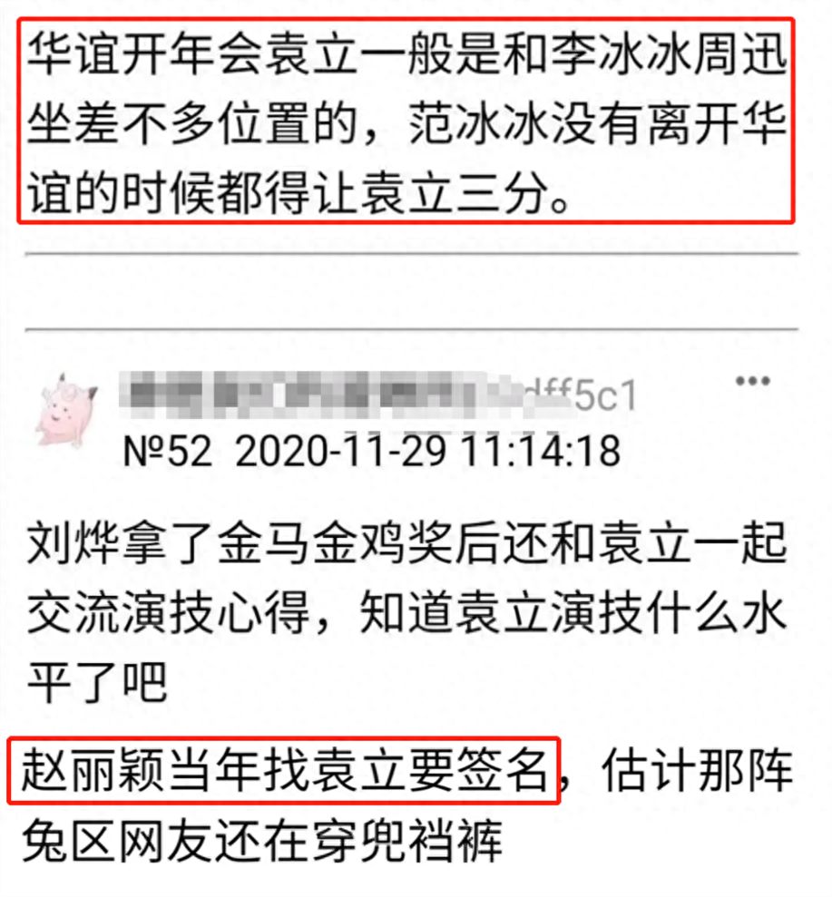 还曾有网友扒出疑似是袁立本人的社交小号在连续多条发文,发文中显示满满的优越感。称袁立名气大,很多大牌明星对她都十分尊敬,还想和她交朋友讨好她。