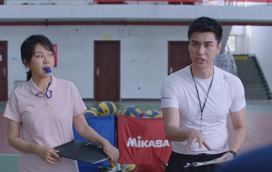 当闫妮跟新来的教练孙麒同框的时候,身高差一下就显示出来了,因为是训练课,所以闫妮这场戏是绝对不会穿高跟鞋的。