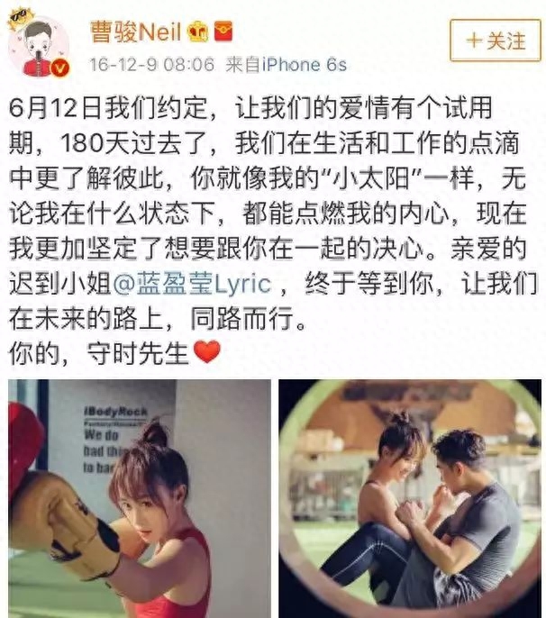 2016年下半年,曹俊再次红了,不是因为电视剧,而是因为他和蓝盈莹的恋爱。