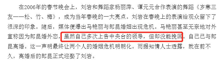 那时候的刘岩,背负着"小三"骂名。插足的,是郎昆和马艳丽的婚姻。