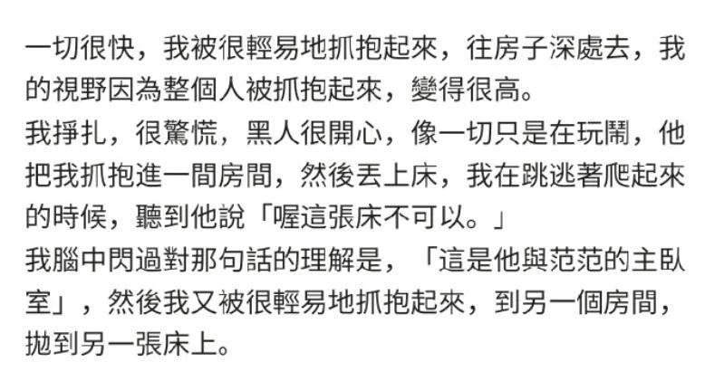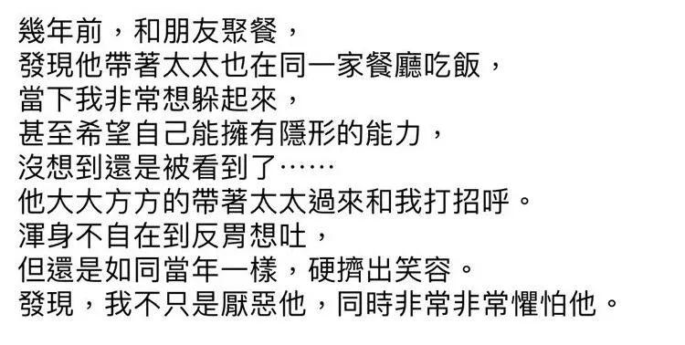 虽然暂时无法确定这是不是大牙编造的情节,但情节本身,确实很常见:对受害者一辈子的噩梦,对施暴者却可能是日常生活里,正常且微不足道的三五分钟,跟他随手拍拍朋友肩膀没太大区别。