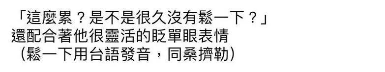 跟陈建州无关,纯纯就性骚扰说一句:各位,工作在人生的很多时刻都不值一提的啊,千万别因为工作,走进自己已经察觉有危险的陷阱。何况给你工作的人就是陷阱本身,还要工作干嘛?接着,在大牙的描述里,陈建州开始骚话不断。这些句子也是 …… 如果有假,只能说,大牙那些年的综艺没有白上,表达太有画面感了。