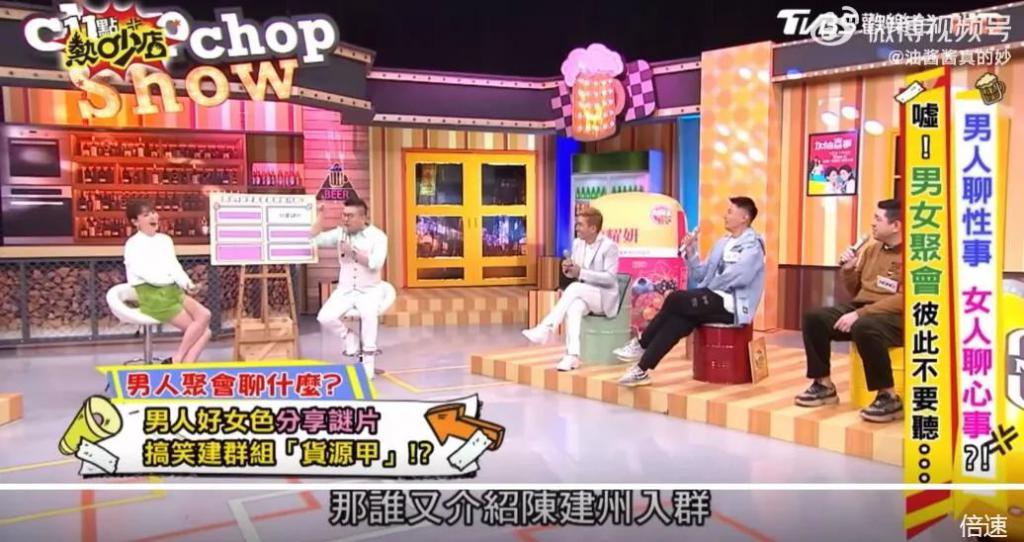 而且很吃惊,虽然 " 黑涩会 " 的团和节目都没了,但当年的热话题," 老大陈建州到底最宠谁 " 到这一期上又被回锅。这种既 " 雌竞 " 又 " 选妃 " 的梗,要是放到现在早踩雷自爆了。可那时,高大、有名又幽默的陈建州,身处万花丛中当然是吃香死了。