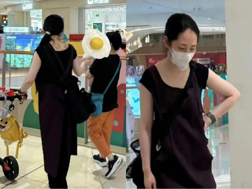 每次被网友拍到,都是完全素面朝天的样子,仿佛身边任何一个普通的孩子妈。