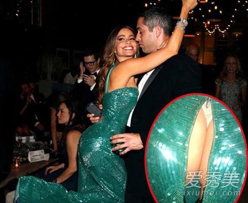 第64届美国电视艾美奖落幕后,各个电视台举办庆功派对。21世纪福克斯电视庆功派对现场可谓热闹非凡,女星索菲亚·维加拉一袭绿色长裙现身,在现场频频主动贴帅哥。或许是动作幅度过大,索菲亚裙子突然裂开露出香臀,令她急忙找来助理处理。
