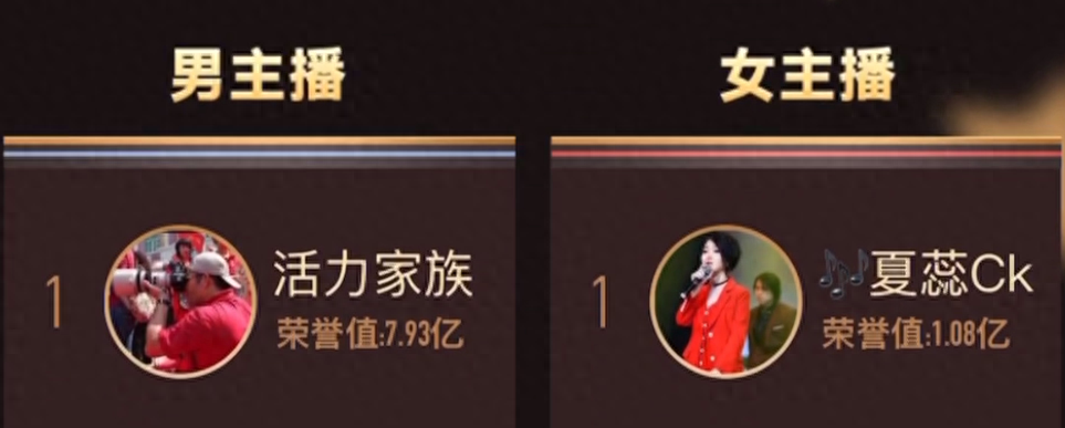 随后十强决战打响,女子组榜首几度易主,主播杨小虫以2.3亿荣誉值的成绩暂居榜首,男子组"沐尚一哥"小狼目前排名第一。