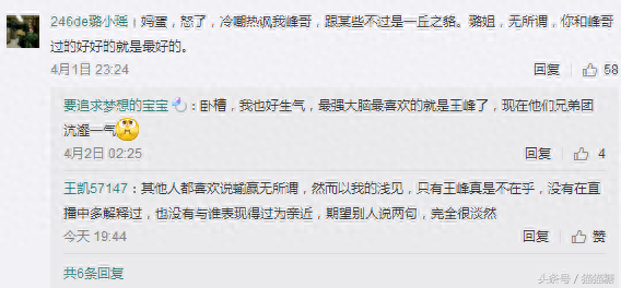 在鲍橒发了微博大概12个小时之后,王峰的女友李璐转发了该微博,并附上这么一段:“呵呵,站在自己狭隘的角度对别人评头论足,还好没说节目组也是由你文章里的归来王者控制的,这位王者还真是神通广大,能让现场几百号人配合他一个人作弊,自行脑补情节,难怪作者说最重要的是创造力!因为登上了别人的平台获益回过头来又对平台说三道四,这种行为就不做评价了,看官们自己下定论!”