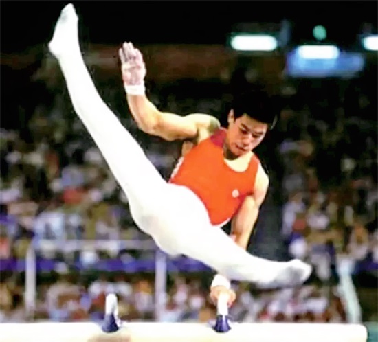李宁在洛杉矶奥运会上夺冠一刻