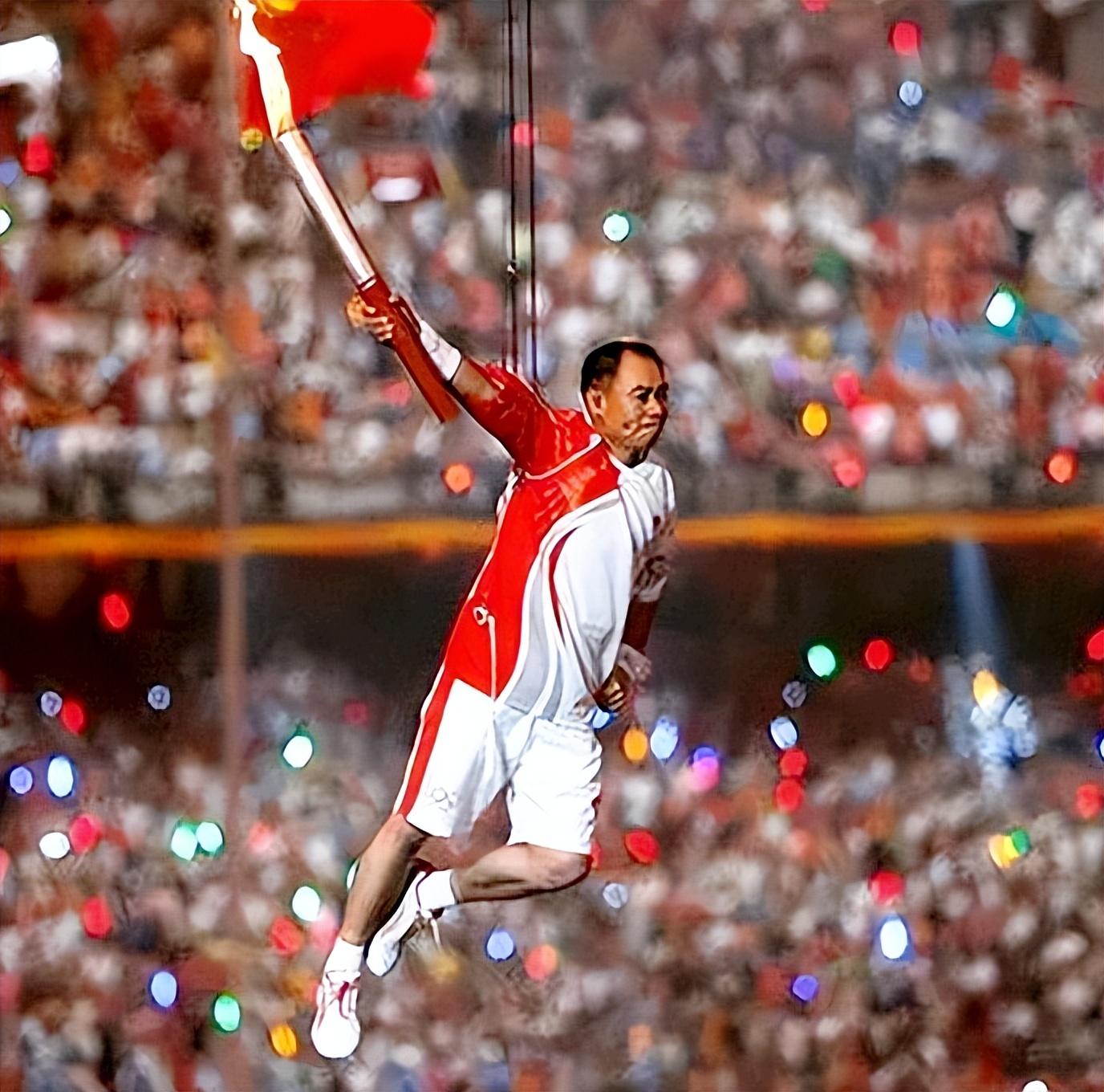 李宁在北京奥运会上点燃圣火
