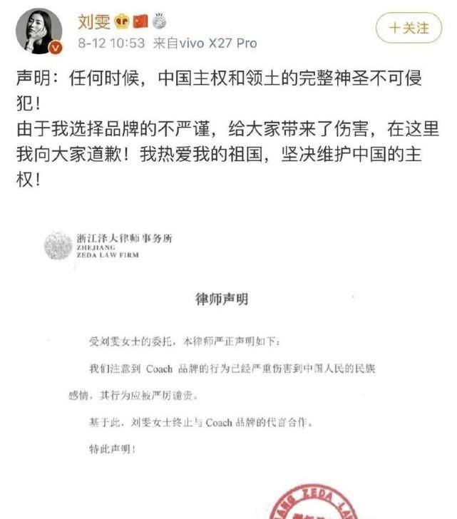 一国外品牌辱华被爆之后,国人愤怒,刘雯单方面终止与其品牌的合作。刘雯捍卫了国家主权,网友们一片叫好,但是刘雯面临的是天价违约金,更有可能会被时尚界封杀。虽然最后经过谈判,某品牌没有让刘雯索赔,但从此刘雯进入了事业的低迷期,很期长时间接触不到任何资源,将近1年没有登上国际红毯,这对一个当红模特是相当痛苦、打击也是巨大的。