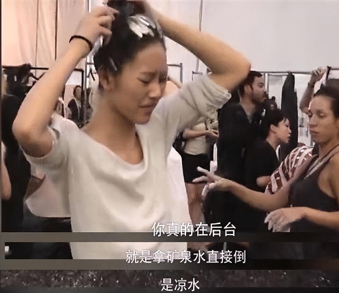 在秀场,为了配合不同的造型,在冬天用矿泉水洗头早已是家常便饭。在后台,当化妆师忙得满场跑时,刘雯直接将洗甲水倒在身上用力搓。