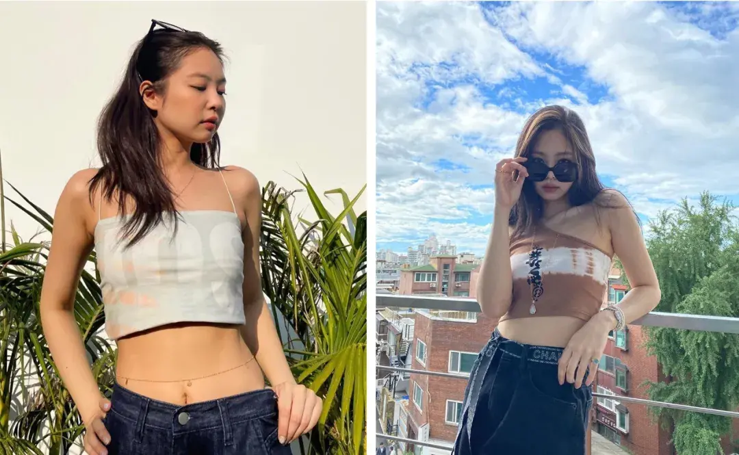 或者直接穿吊带,优势尽显,不得不说,Jennie独特的身材优势在这个身高段真的太少了。