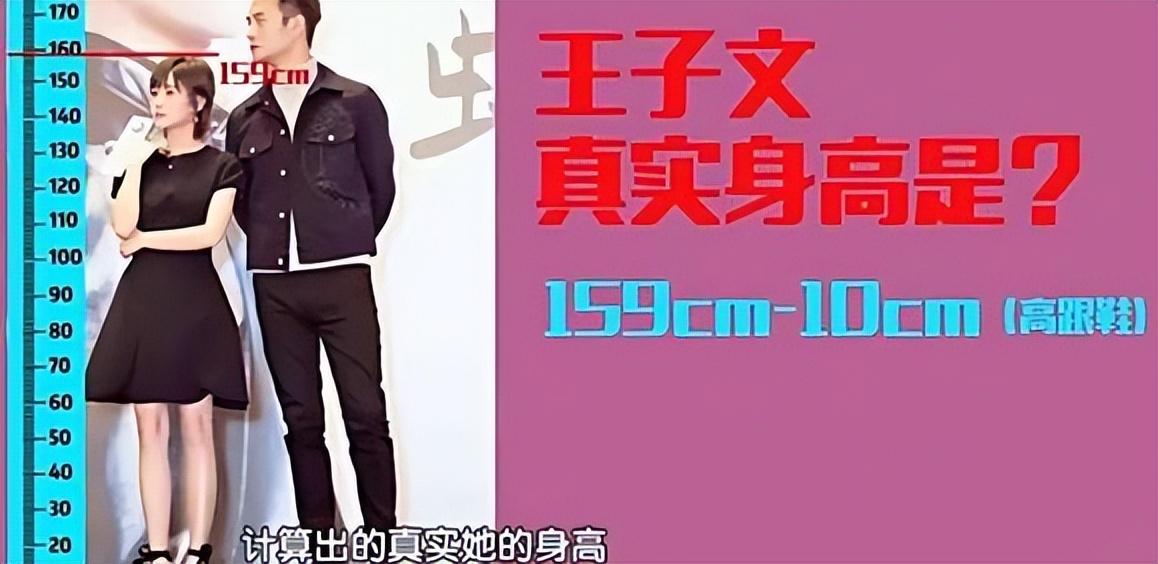 一种是以王凯的身高为参考拉标尺,算出王子文身高1.59米,再减去10cm的高跟鞋。