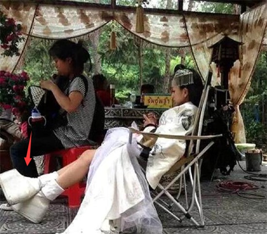 没办法,剧组只好想尽办法取长补短。摄影师避免拍远景,造型师给她上面梳高髻,下面穿增高鞋。最终生生把1米53的她拍成了1米72。