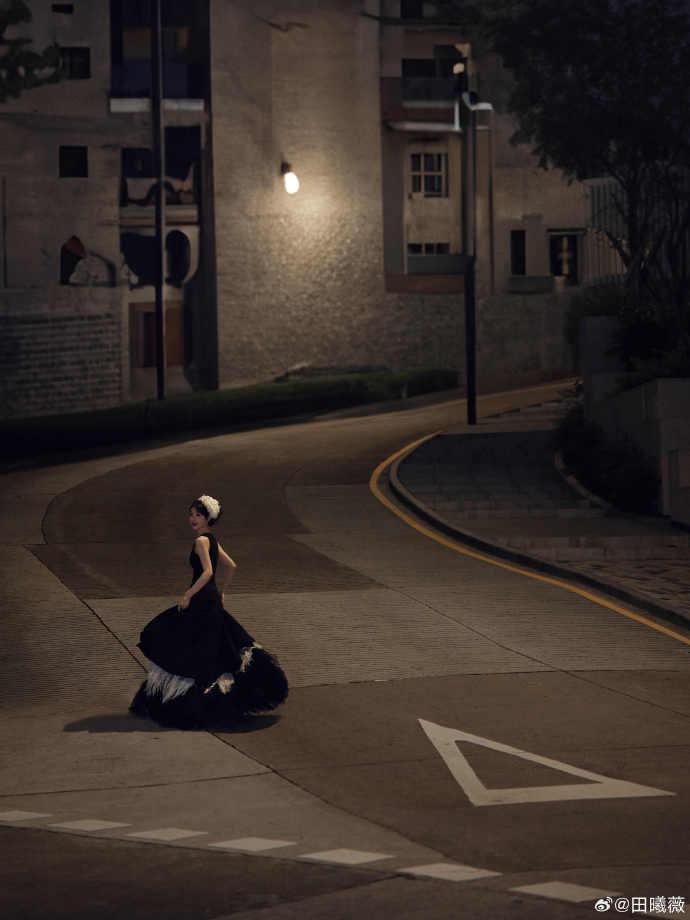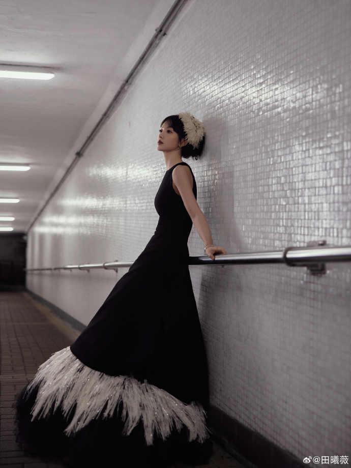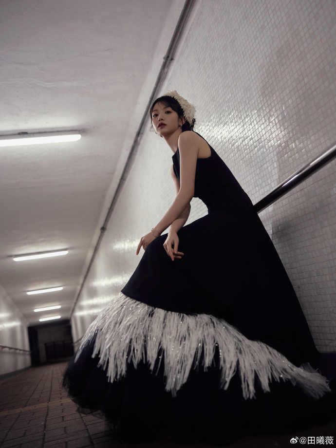 近日,一组田曦薇的写真曝光,她身穿黑裙搭配白色流苏,在隧道内徘徊起舞,优雅复古。