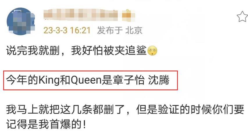 但肖战跟杨紫要是总蝉联,也显得这个活动没有什么新鲜感了,早在3月3号的时候,就有博主爆出了今年的King和Queen是沈腾和章子怡,而且在上面的网传获奖名单中,也未见肖战与杨紫的名字,所以两位最后会不会出席还是个未知数!
