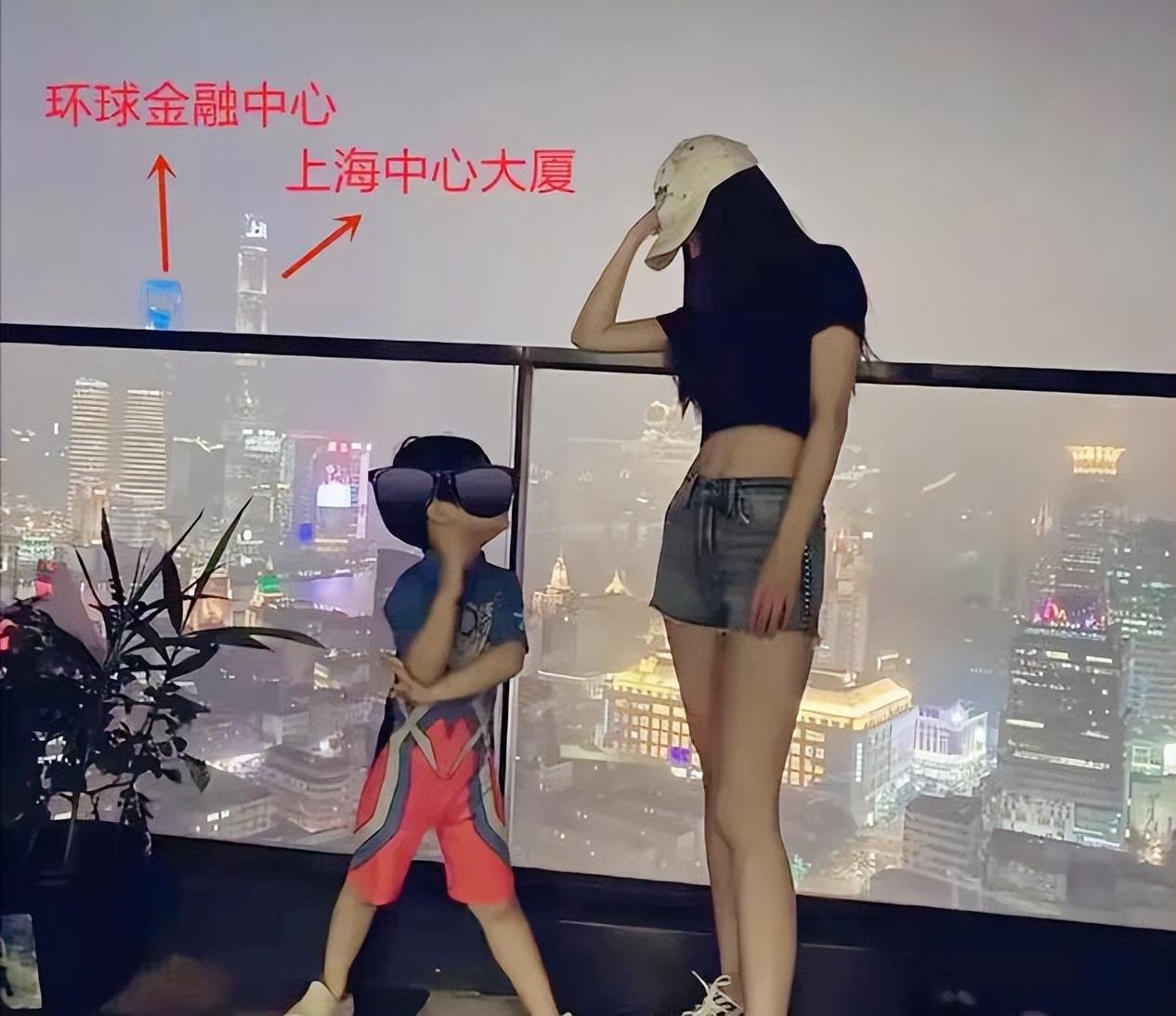 而在与儿子小海绵的合照中,母子两个人都站在自家阳台上,身后就是环球金融中心,和上海中心大厦,可见地理位置有多优越。
