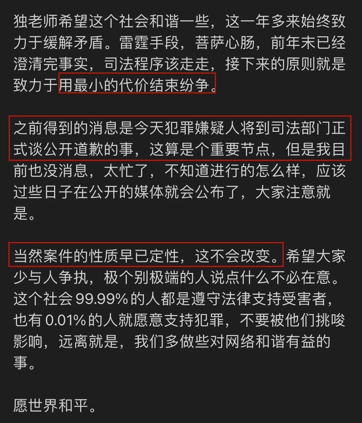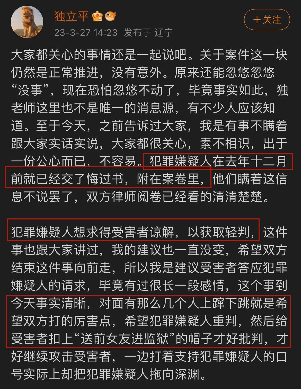 除此之外,“独立平”也带来了另外一个消息,那就是陈露会在3月27日当天,前往司法部门商谈公开道歉一事。