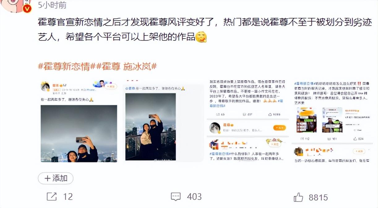 因为,就在他公布恋情的3个小时前,有八卦媒体在网络上透露,霍尊已经交往了新女友。