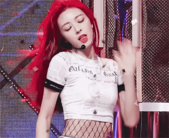 去年刚出道的yuna,凭借超强的舞台表情管理,暴风吸粉。一头红发像小美人鱼。