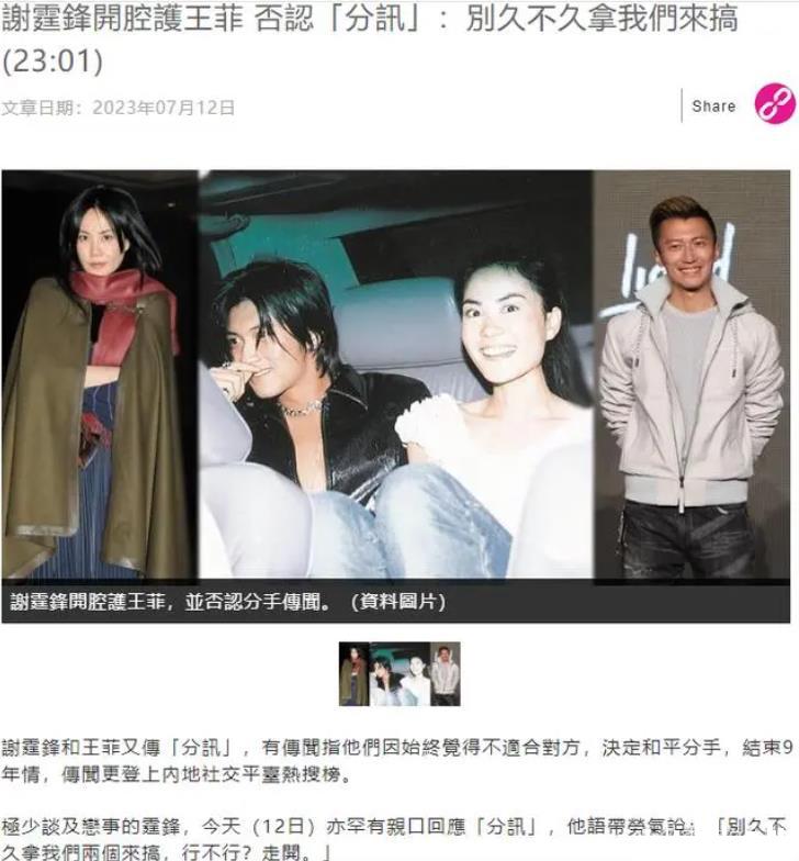 港媒曝王菲谢霆锋分手,男方首次回应曝真相