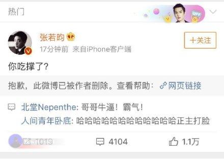 张若昀这波正面刚也被大家点赞说男友力爆棚,最后,那名大V真的就被吓得赶紧删掉了微博。