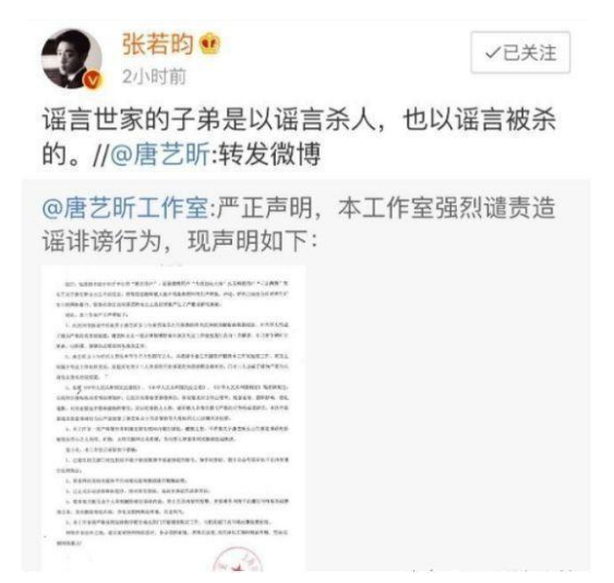 很多人通过看吴与唐在真人秀《我们来了》里的互动就会觉得这样的猜测也不是空穴来潮,但很快,唐艺昕工作室就发出了辟谣声明,随后,张若昀也霸气转发了女友的微博证明这一切都是谣言。