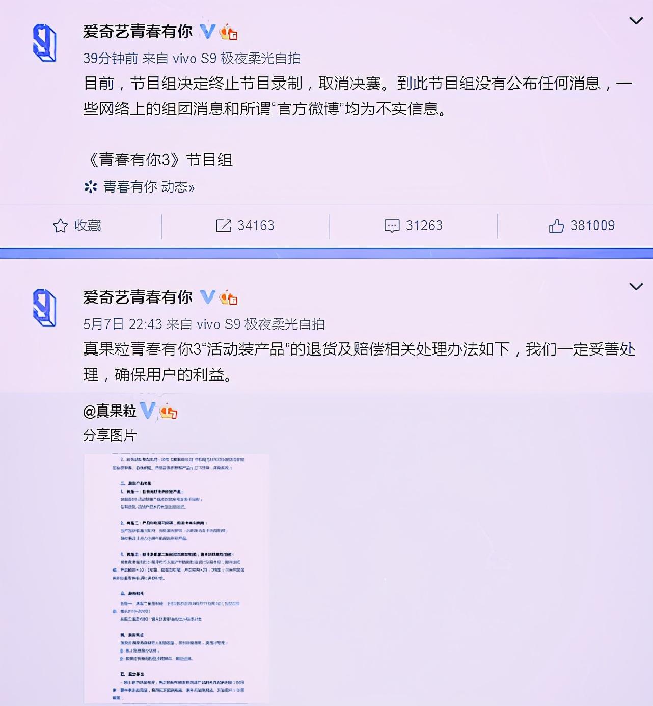 紧接着《青春有你》官方亲自出来辟谣,节目终止录制,取消决赛,也就是说不会有成团出道这件事情了。选手们白花了这几个月的时间,粉丝也是打投了一个寂寞,最终一切都成了空。