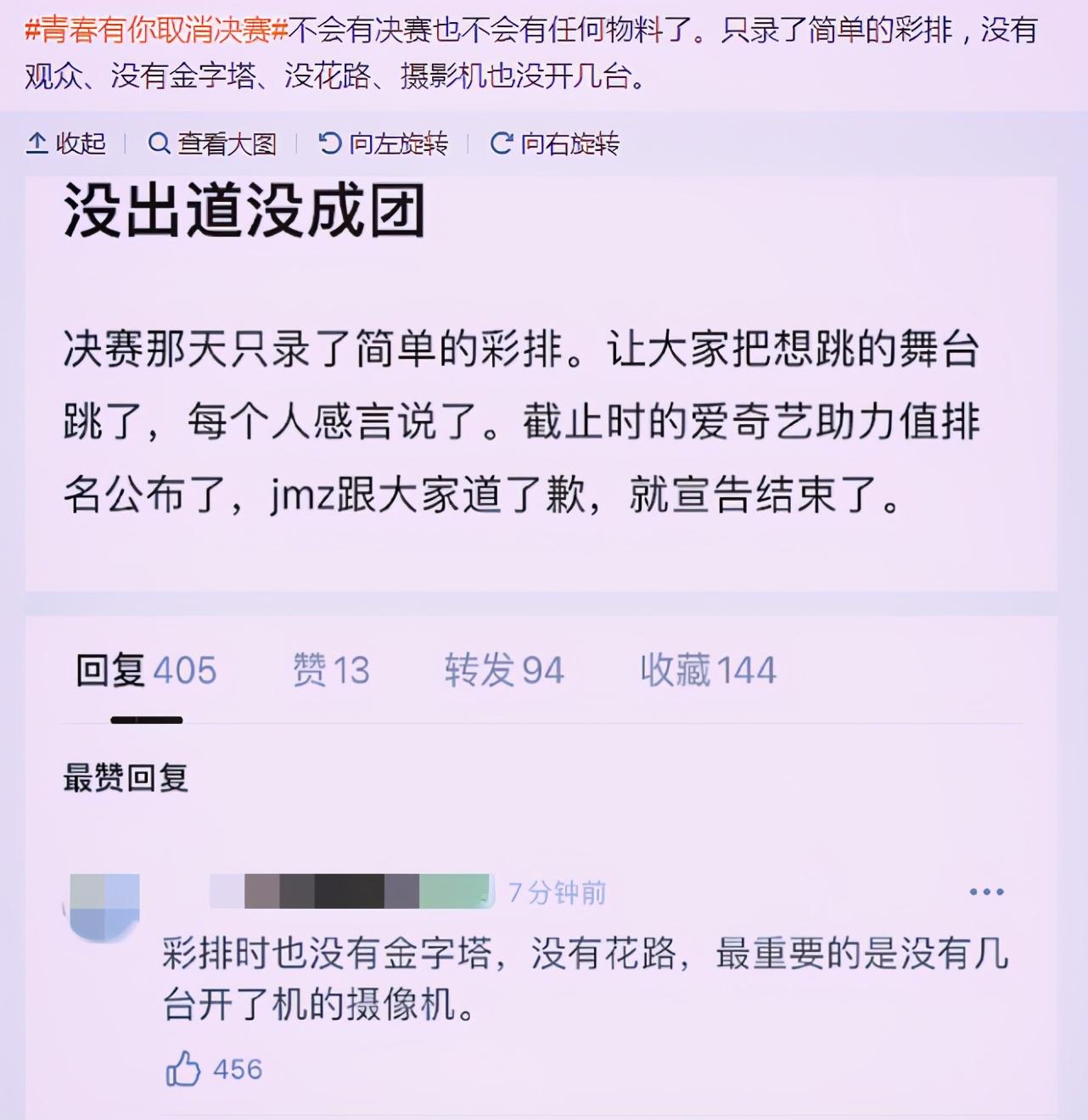 《青春有你3》可以说是史上最惨的选秀综艺了,辛辛苦苦搞了一场,粉丝也真情实感地给自己喜欢的选手投票,结果这个综艺先是成团夜延期播出,后来直接就取消了成团。