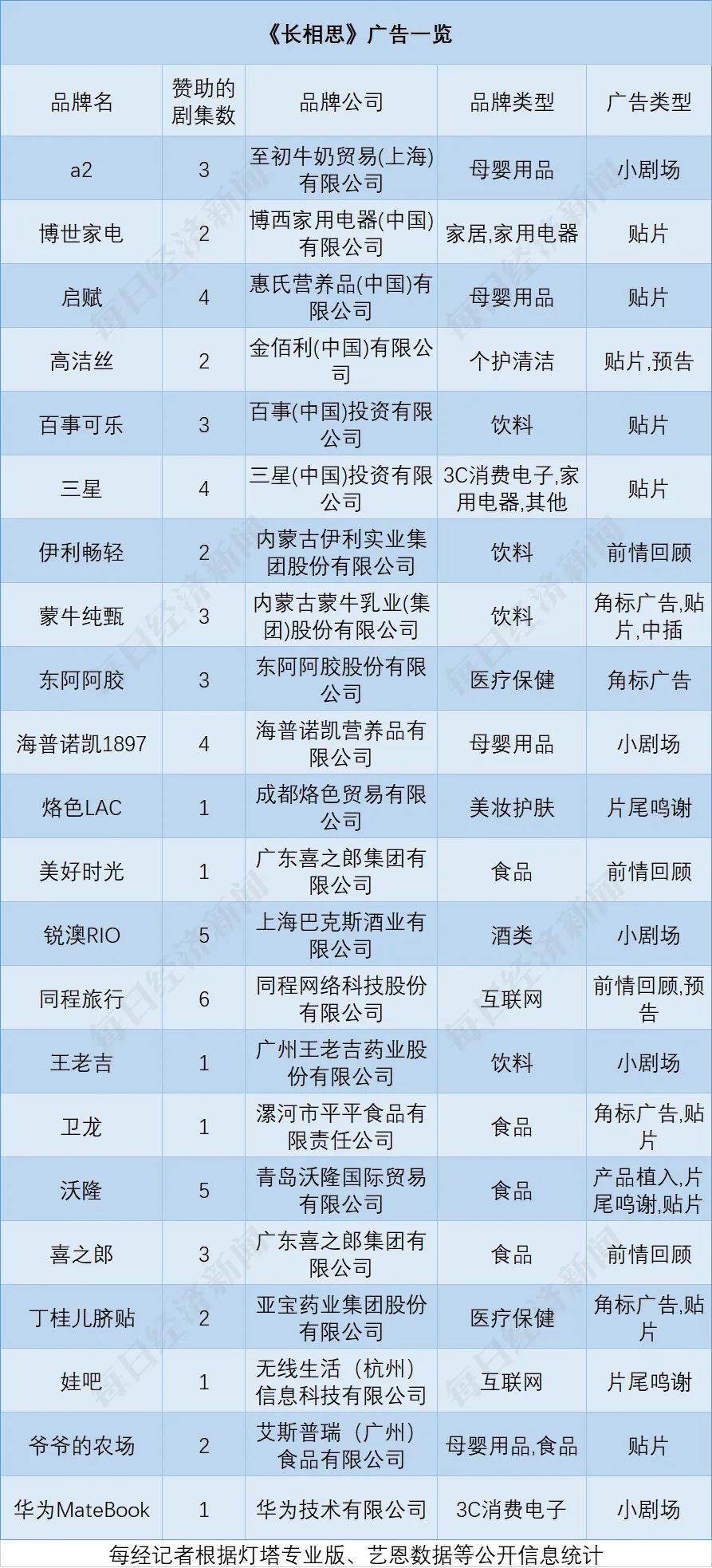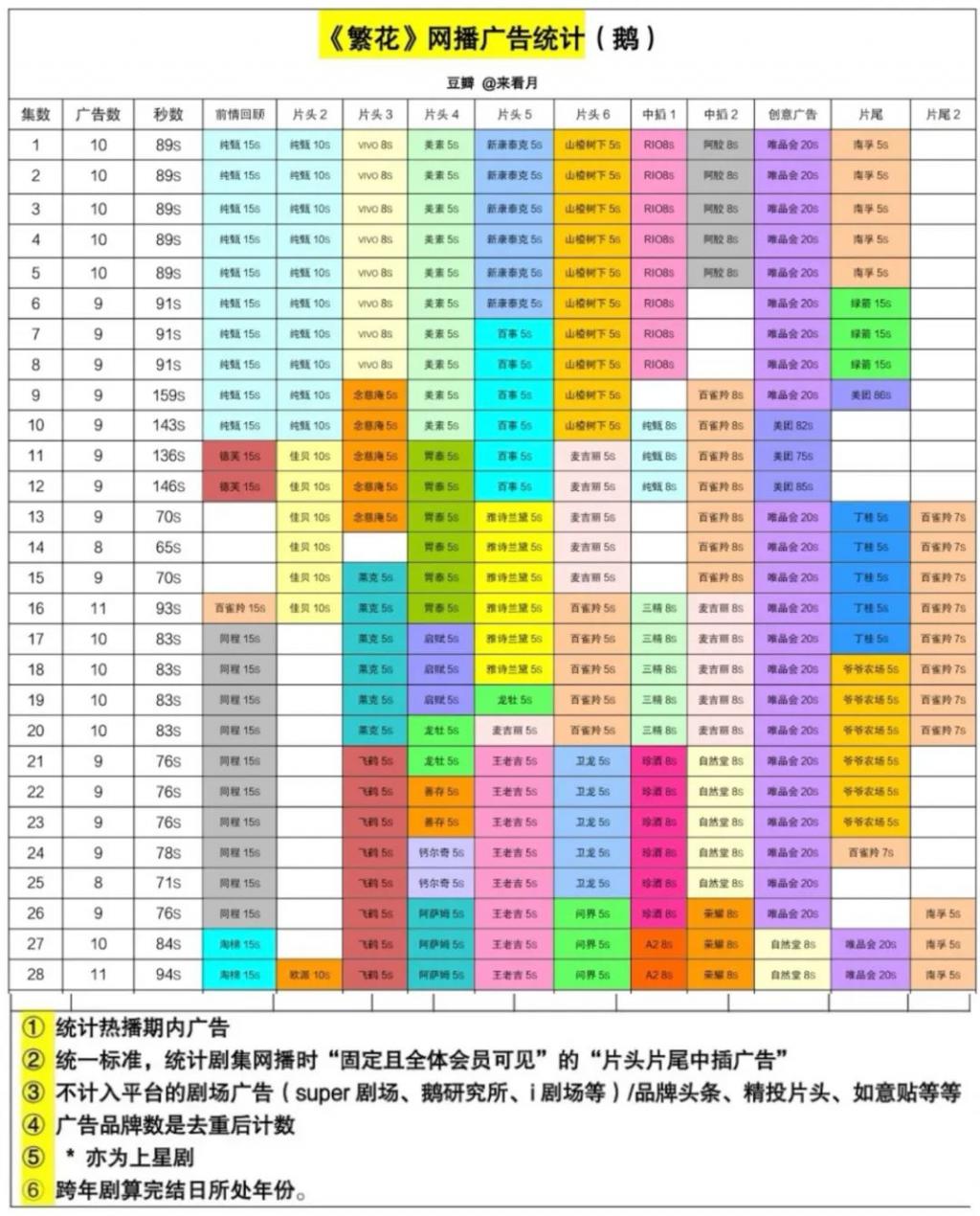 而同为 2024 年热播剧,也同样讲述 20 世纪 90 年代故事的《繁花》,每集片头广告均维持在 5 — 6 个,且源源不断更换新品牌。" 播出过程中,有很多广告商找到我们,还推掉了一些。"1 月 17 日《繁花》方面相关人士在电话中向每日经济新闻记者表示。