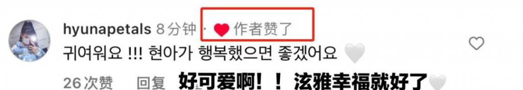 泫雅上传照片之后,评论数量急剧上升,在大家还不知所措的时候,也有粉丝直接大胆祝福泫雅认爱,希望泫雅今后都能够幸福,泫雅十分坦诚,高调地点赞了这个评论。